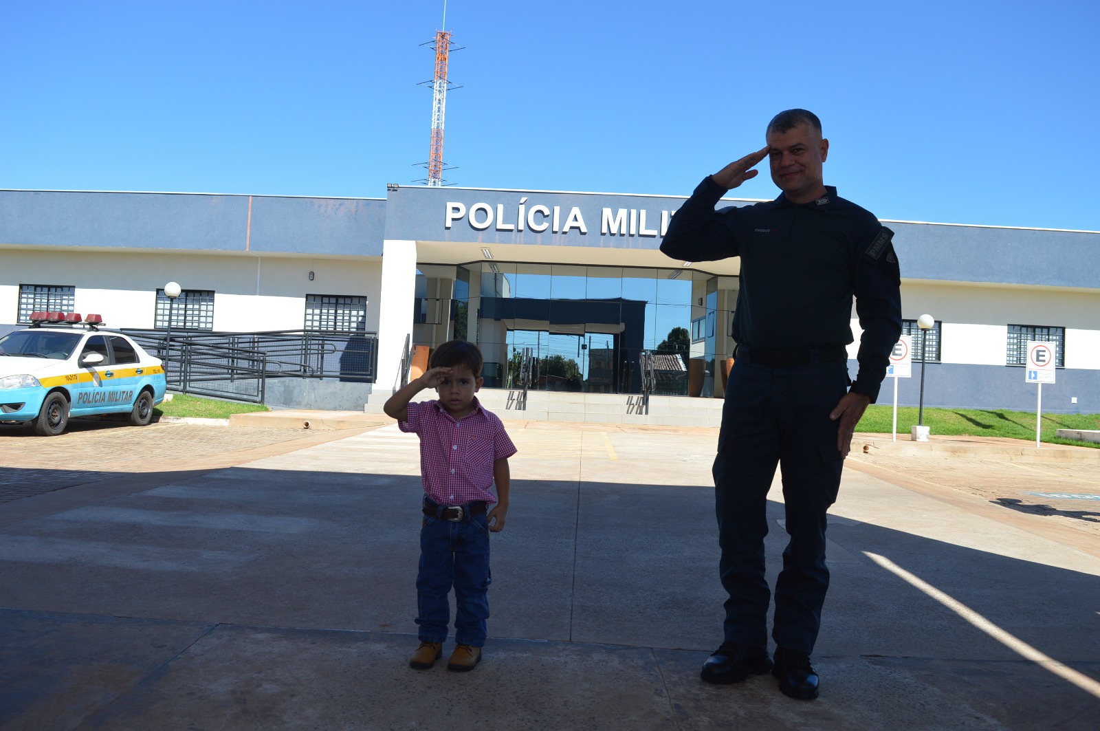 Coxim (MS): Na manhã do dia (23), o 5º Batalhão de Polícia Militar recebeu uma visita muito especial: o pequeno Ravi Samuel, de apenas 3 anos, realizou o sonho de conhecer de perto a rotina dos policiais militares em Coxim/MS.