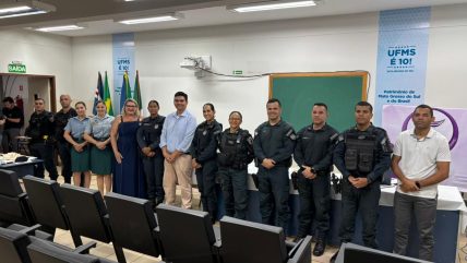 Coxim (MS) – Policiais Militares participaram, na noite de ontem (04/03), de um ciclo de debates sobre o enfrentamento à violência contra a mulher e ao feminicídio, realizado na Universidade Federal de Mato Grosso do Sul (UFMS), campus de Coxim.