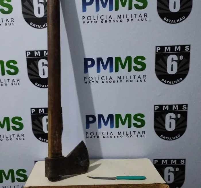 PM - MS Polícia Militar Detém Homem Que Danificou Parte da Residência com Machado em Corumbá