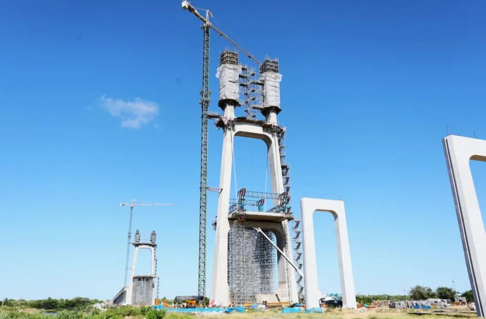 Neste momento está sendo feito o balanço sucessivo da ponte de 350 metros, que é uma particularidade que diferencia a obra das demais. Este é um método de construção que consiste em avançar segmentos de concreto, chamados aduelas, até cobrir o vão necessário.