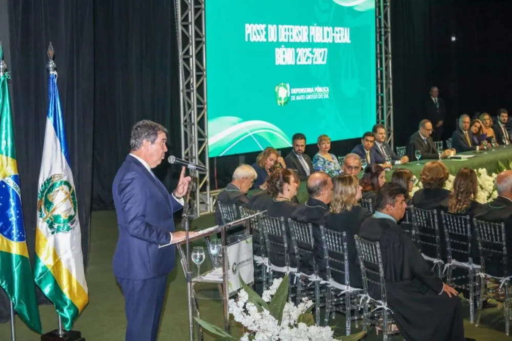“Seguiremos com uma atuação firme, de proteção aos direitos humanos, das mulheres, das crianças, da população LGBTQIA+, dos povos originários, dos indígenas, dos negros, das pessoas com deficiência, dos mais pobres. A Defensoria Pública de Mato Grosso do Sul acredita que o acesso à Justiça não é um favor, é um direito. E direito não se nega, se garante”, discursou Gasparini ao ser reconduzido ao cargo de defensor público-geral do Estado.