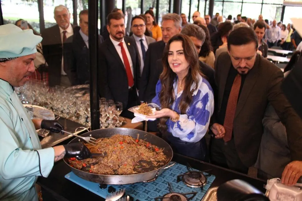 Durante a inauguração foi servido no molde “finger food” arroz carreteiro e macarrão de comitiva. Também participaram da inauguração do refeitório da ALEMS os deputados Marcio Fernandes (MDB), Professor Rinaldo Modesto (Podemos), Antonio Vaz (Republicanos), Mara Caseiro (PSDB), Renato Câmara (MDB), Neno Razuk (PL), Pedrossian Neto (PSD), Roberto Hashioka (União), Paulo Duarte (PSB), Zeca do PT (PT), João Henrique (PL), Lucas de Lima (Sem partido), Pedro Kemp (PT) e Lidio Lopes (Sem partido).